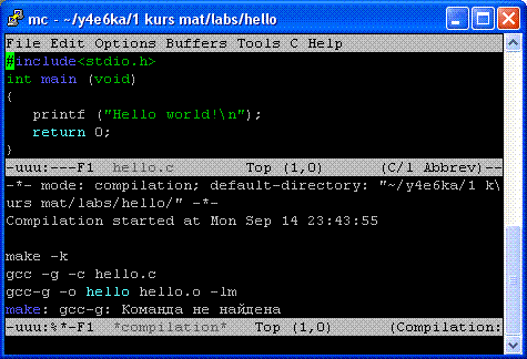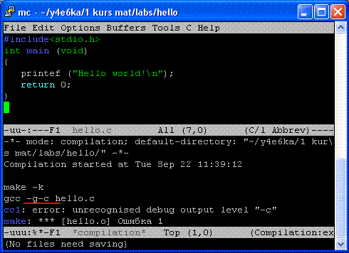 ![]() В этом примере найдена ошибка в файле makefile, до компиляции самой программы дело не дошло. Очевидно, отсутствует пробел в записи опций. |