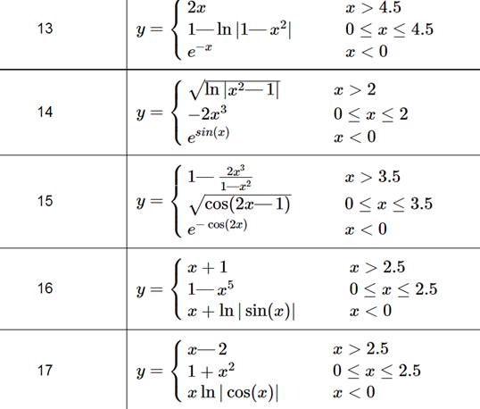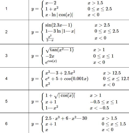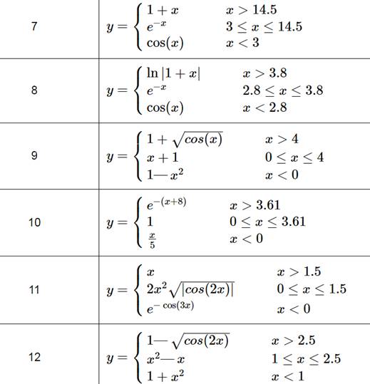 Задание для всех вариантов. Вычислить значение y для заданного x. Нарисовать блок-схему вычислений