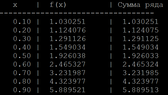 18. Вычислить значение суммы бесконечного ряда с заданной точностью e=10-5