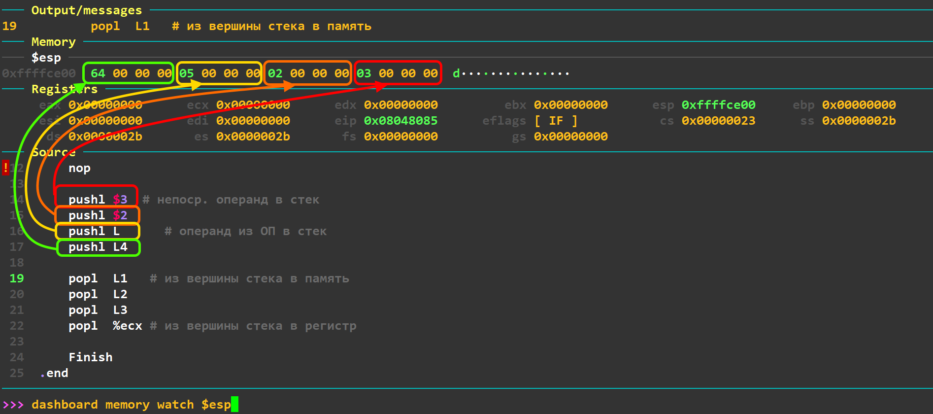 dashboard memory watch $esp+16dashboard memory watch $esp+32см. рис 3.