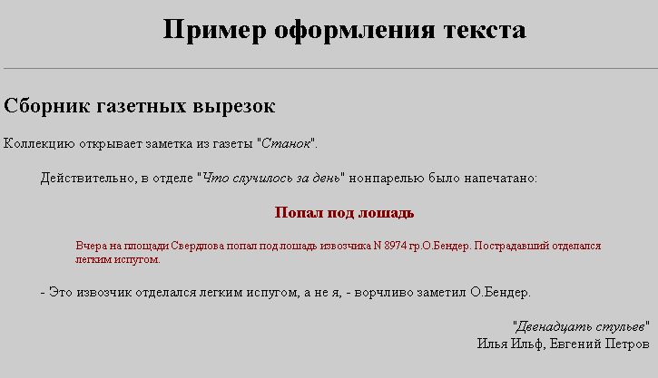 Оформите текст, чтобы он выглядел следующим образом:
