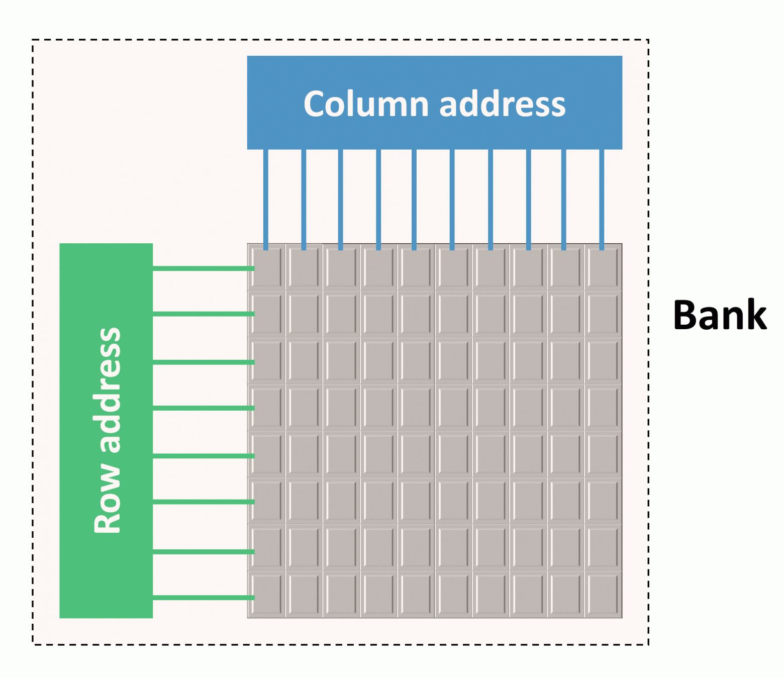 - Если бы чип DRAM мог предоставлять доступ к одной странице за раз, то это было бы не особо удобно, поэтому в них упаковано несколько банков ячеек памяти.