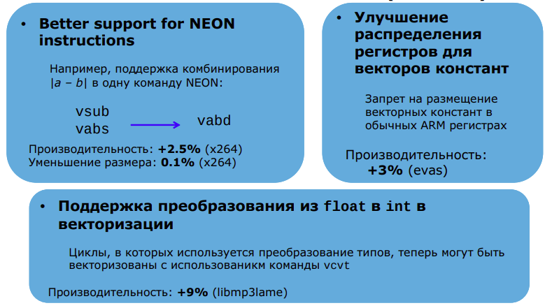 Улучшения кодогенерации для ARM Advanced SIMD (NEON)