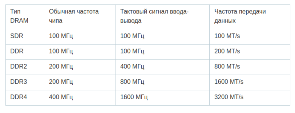 - У всех DRAM есть центральный тактовый сигнал ввода-вывода (I/O, input/output)