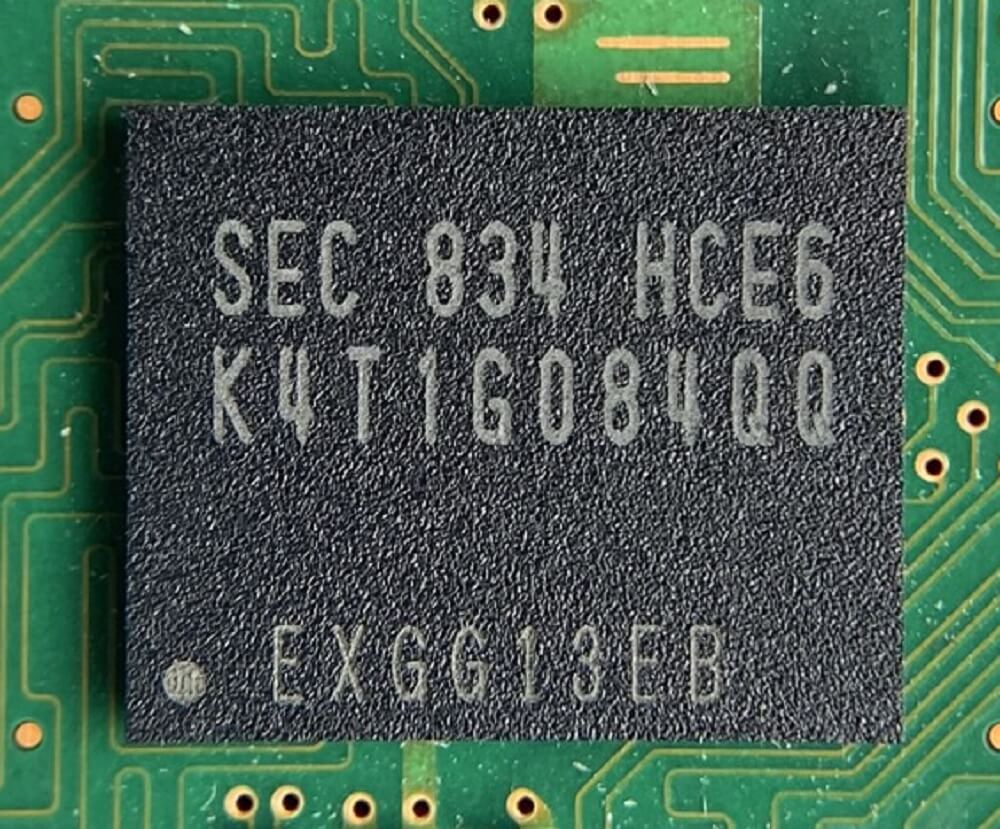- Весь чип, содержащий все банки и шины, упакован в защитную оболочку и припаян к плате.