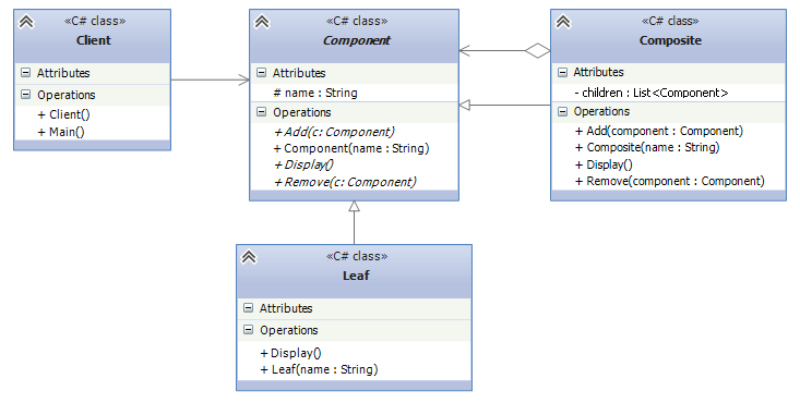 - Leaf: представляет отдельный компонент, который не может содержать другие компоненты