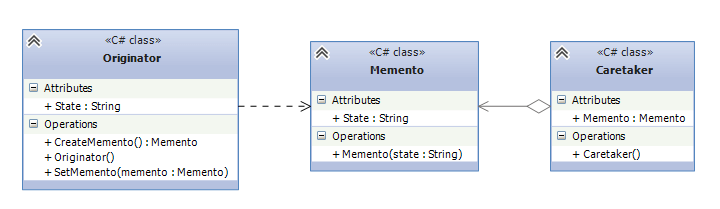 - Позволяет выносить внутреннее состояние объекта за его пределы для последующего возможного восстановления объекта без нарушения принципа инкапсуляции.