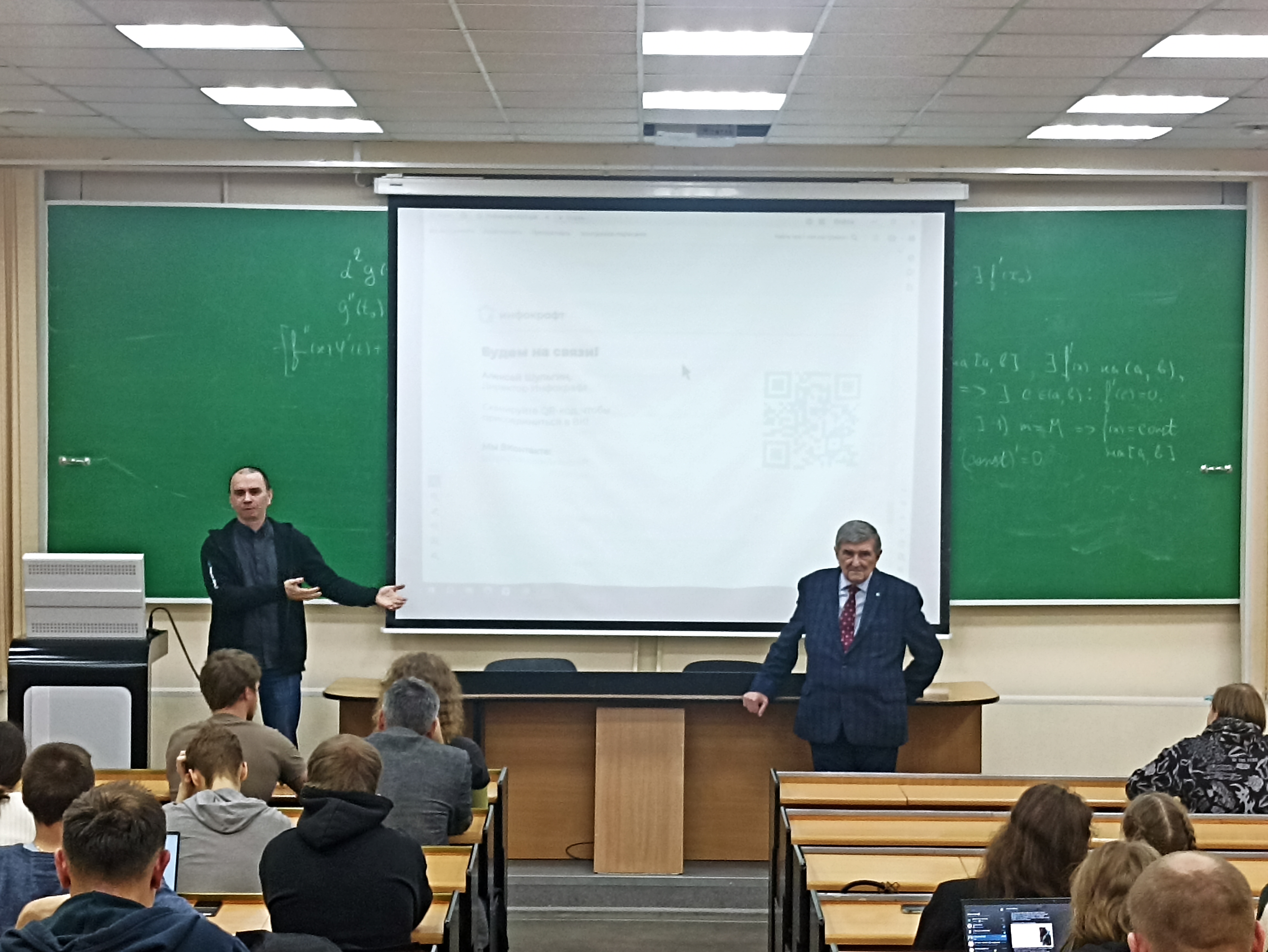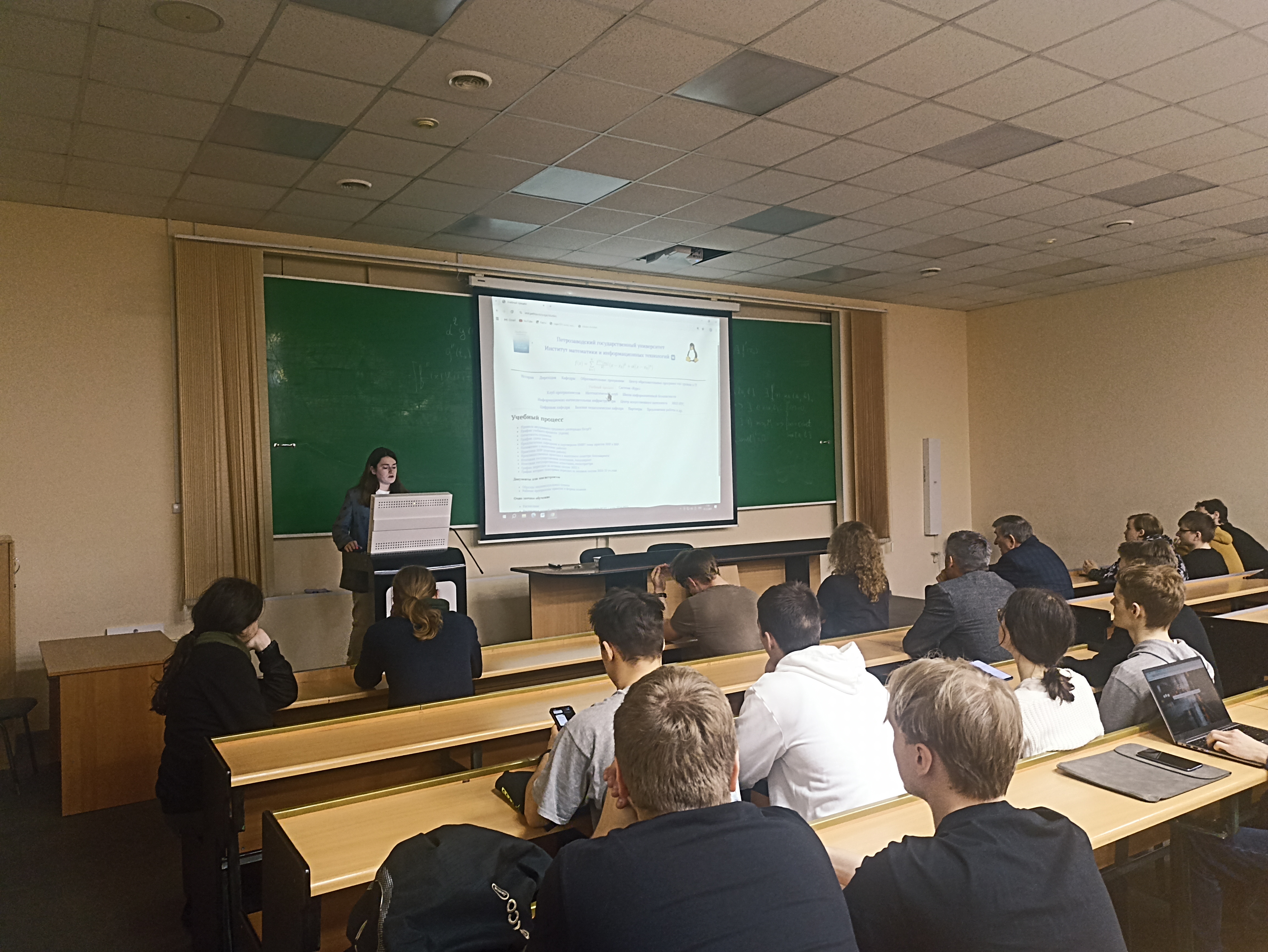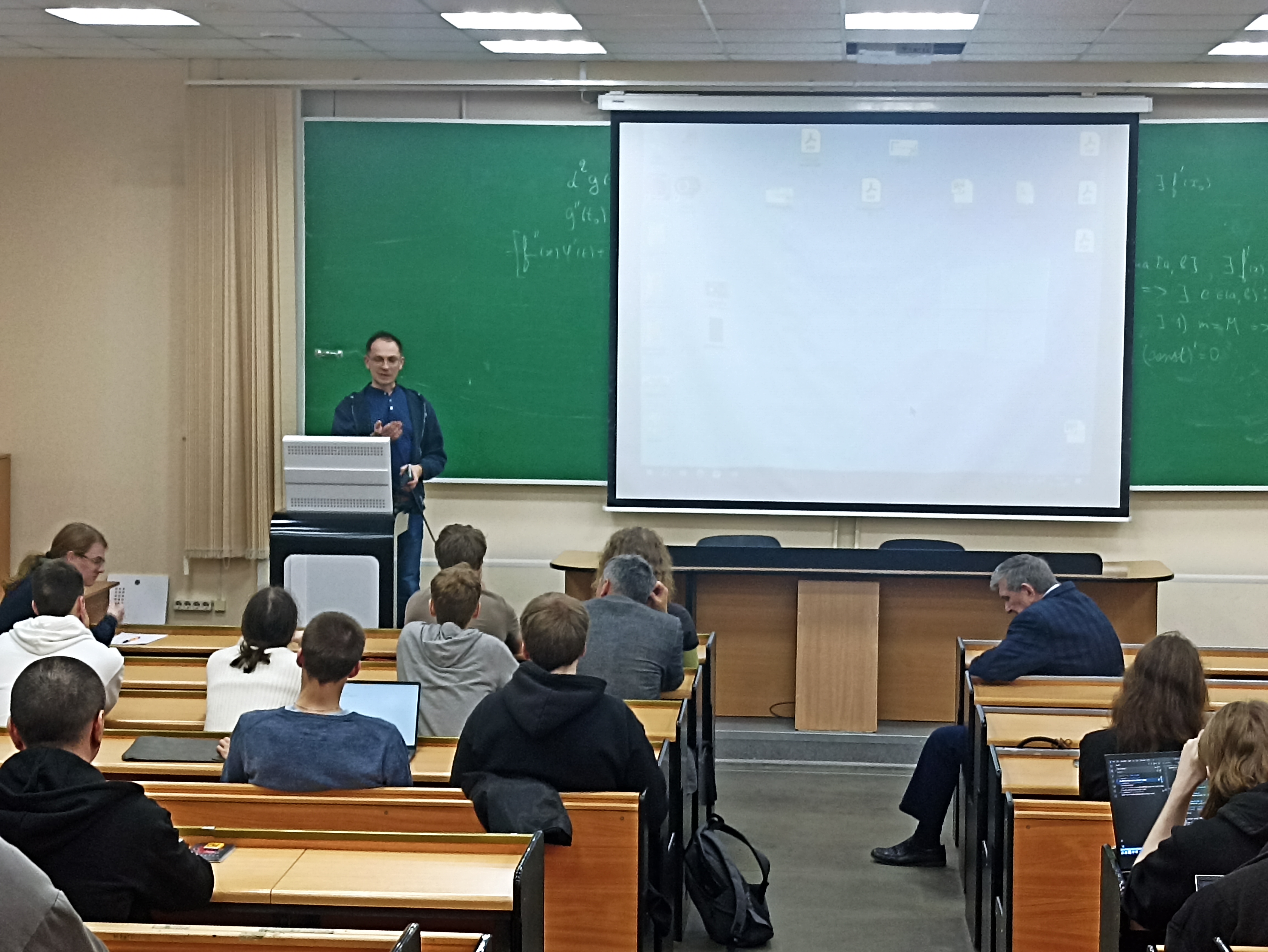 Заседание секции "Информатика и математическое обеспечение" 77-й студенческой конференции. 24 апреля в очно-дистанционном формате в рамках 77-ой Всероссийской (с международным участием) научной конференции обучающихся и молодых ученых, посвящённой 85-летию ПетрГУ и 80-летию Победы в Великой Отечественной войне прошло заседание секции «Информатика и математическое обеспечение», на котором председательствовала доцент О. Ю. Богоявленская. Экспертная комиссия кафедры приняла активное участие в обсуждении докладов (В.М.Димитров, В.А.Ермаков, Д.Ж.Корзун, К.А.Кулаков, Д.Б.Чистяков). Были представлены доклады молодых ученых и из других университетов, в т.ч. зарубежных. Подробнее.